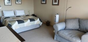 Bay View Apartment The 2 level apartment with private entrance is perfect for a family getaway. This 2 bedroom unit sleeps 5. The apartment features: Full kitchen Bathroom Lounge Private balcony Large communal deck Washing machine TV Wifi Master bedroom King size bed TV Second bedroom Double bed Single bed Check Availability & Book